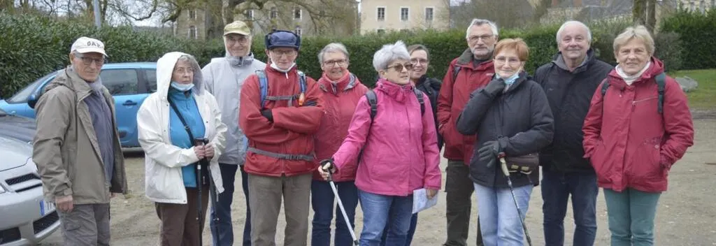 Le groupe de marcheurs au départ d’une randonnée dominicale. © Le Maine Libre