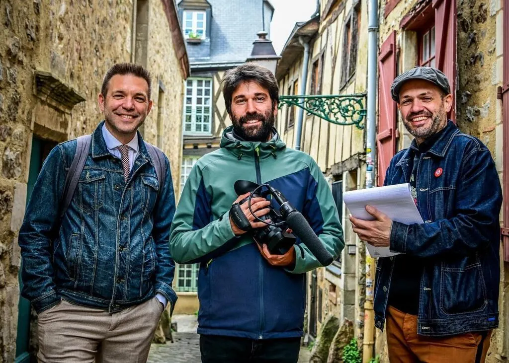 Julien Sénéchal (producteur), Félix Besson (réalisateur) et Ruddy Guilmin (auteur), ont Å“uvré ensemble pour créer le documentaire L’Usine retrouvée, qui sera diffusé jeudi 5 juin sur France 3. © Le Maine Libre – Yvon LOUÉ