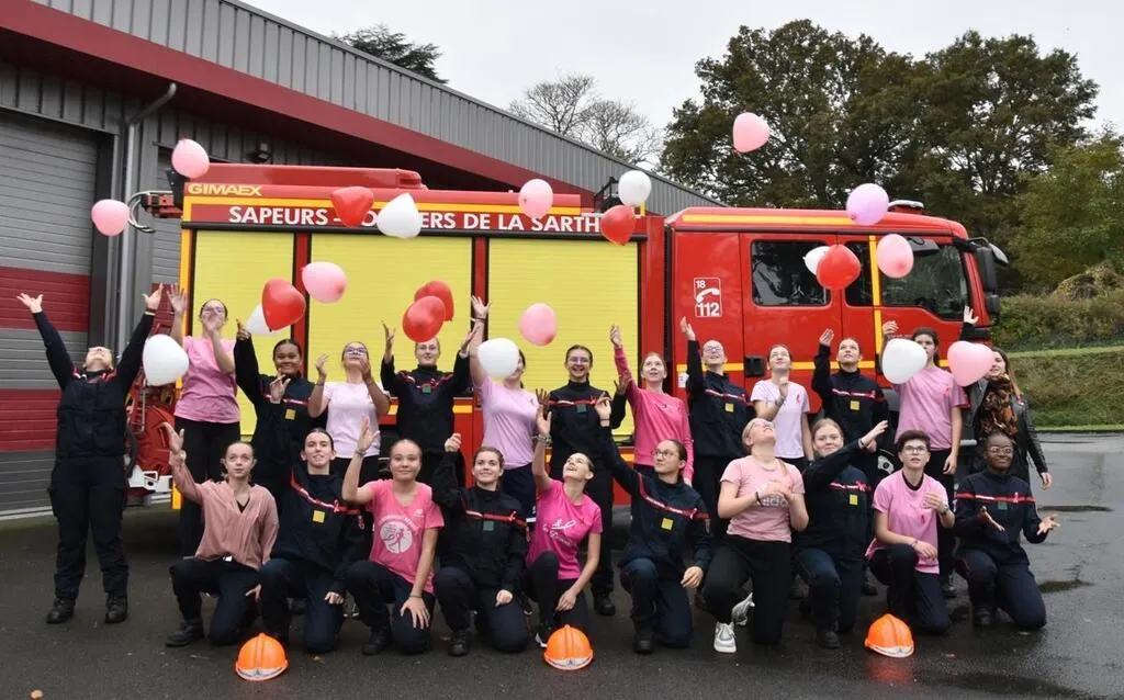 Les jeunes sapeurs pompiers ont participé à Octobre rose. © Le Maine Libre