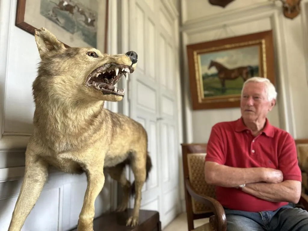 Villeneuve-en-Perseigne, jeudi 12 juin 2025. Antoine Favier a grandi dans le château de Montigny. Le loup naturalisé en 1888, il le connaît depuis qu’il est enfant. © Le Maine Libre