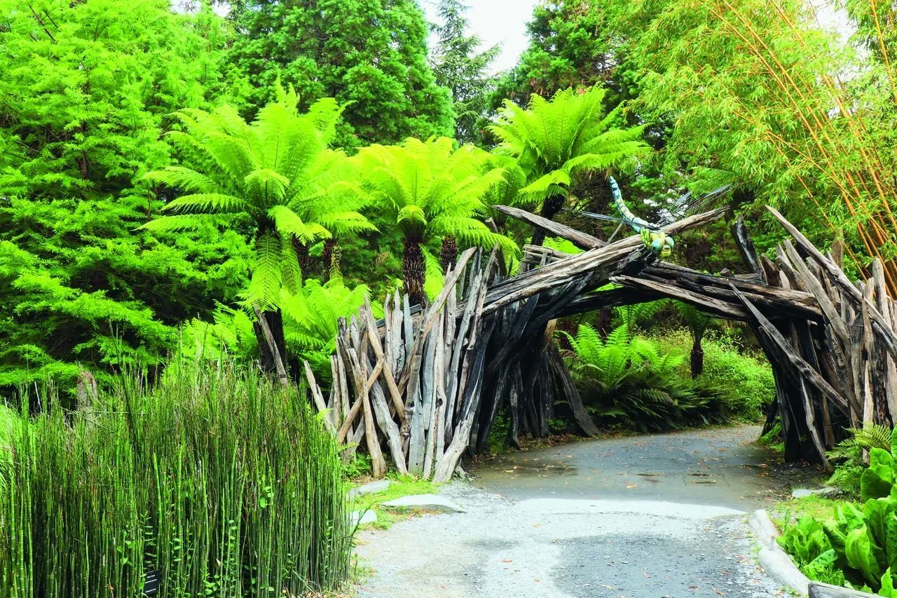 photo  à l’entrée du jardin, une libellule à taille réelle, « de l’époque », vous accueille. jets d’eau, brumisation entrent en jeu pour une humidité constante.  ©  karin maucotel 5