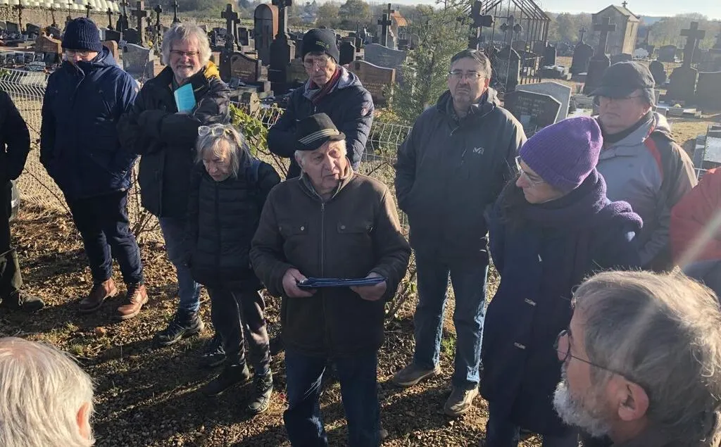 Vendredi 22 novembre 2024, ils étaient près d’une vingtaine réunis devant le cimetière de Bazouges-sur-le-Loir pour dénoncer le projet d’augmentation de l’activité de l’élevage bovin de La Petite Fontaine. © Le Maine Libre