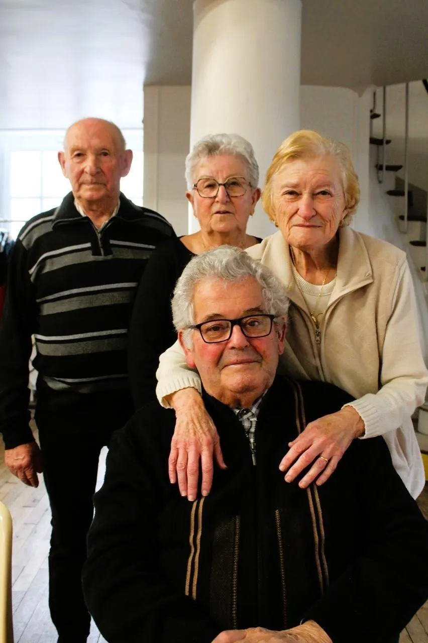 Au premier plan, Gérard et Nicole Chopin, aux côtés de Jean-Marie et Solange Plessis, ont partagé leur premier Noël organisé au sein du foyer. © Le Maine Libre