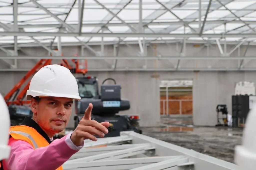 Paul-Martin Lalande, le directeur général des ateliers FIM, sur le chantier de la future usine de Femilux, à Brûlon (Sarthe), appelée à accueillir 800 salariés à l’horizon 2027. © Ouest-France