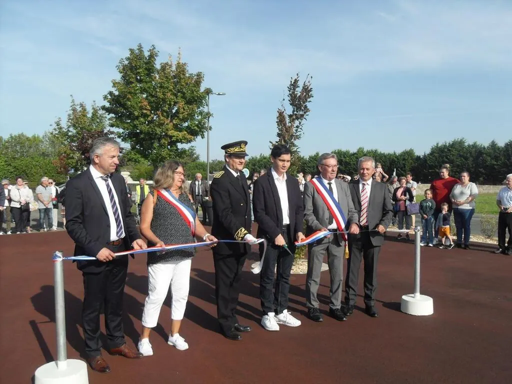 Les officiels entourant le jeune Thibault lors de la coupure du ruban. © Le Maine Libre