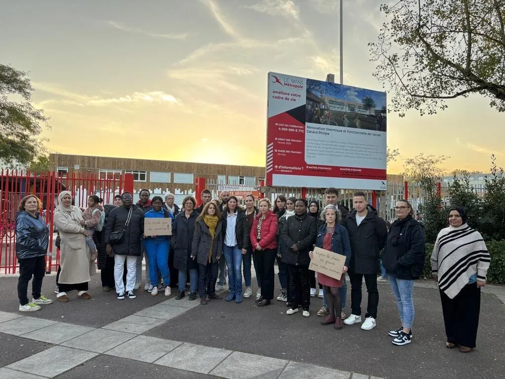 Parents et enseignants se sont rassemblés ce lundi 14 octobre 2024, devant l’école primaire Gérard-Philipe, quartier des Sablons au Mans (Sarthe). Ils s’opposent à une partie des travaux de rénovation qui consisteraient à ériger des cloisons pour passer de quatre classes à six classes.
