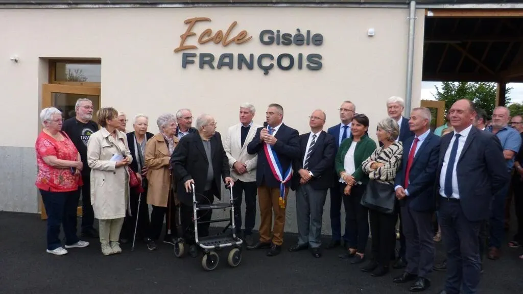 La famille de Gisèle François (à gauche) a assisté à l’inauguration de l’école auprès des élus et représentants de l’État. © Le Maine Libre