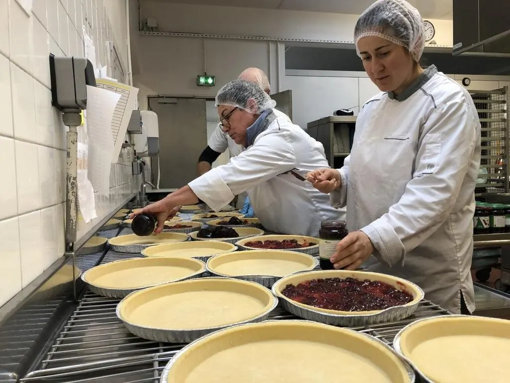 La préparation d’un gâteau basque, vendredi 6 décembre 2024, à la cuisine centrale de La Flèche. Il sera au menu des enfants ce lundi. © Le Maine Libre