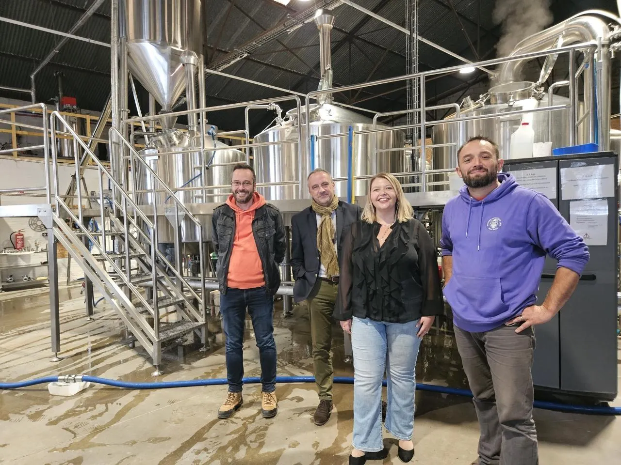 Fabien Katitsch (conseiller séjour de l’office de tourisme), Christian Taillebois, Sterenn Guéguen et Cédric Grouard (co-fondateur de la brasserie Mage Malte). © Le Maine Libre