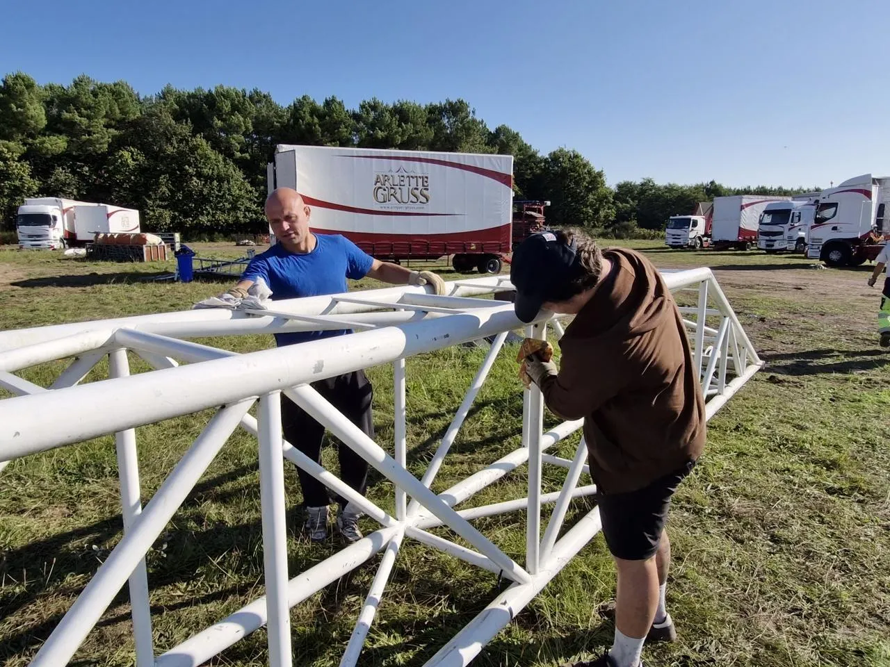 Les derniers éléments du chapiteau sont démontés et nettoyés avant d’être mis sur les camions. © Le Maine Libre
