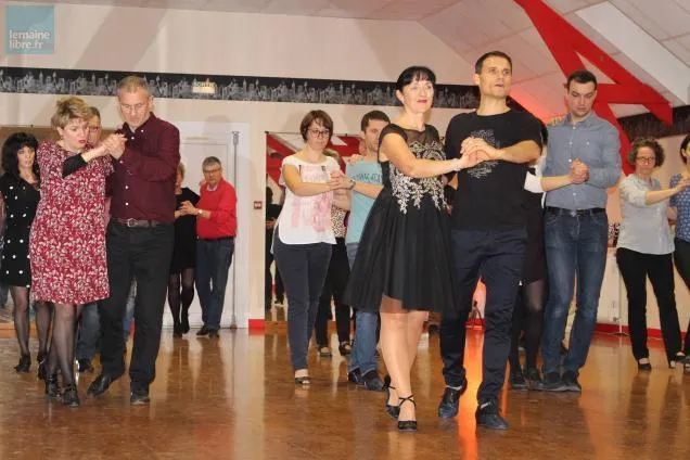 En cette veille des fêtes de fin d’année, Brigitte Foucher a revêtu une jolie robe noire avec paillettes et voile dans le dos. Chaussures de ville au pied pour Monsieur, talons pour Madame, ils sont plus d’une vingtaine de danseurs à glisser sur le parquet de la grande salle de danse rue Albert-Camus, à Sablé.