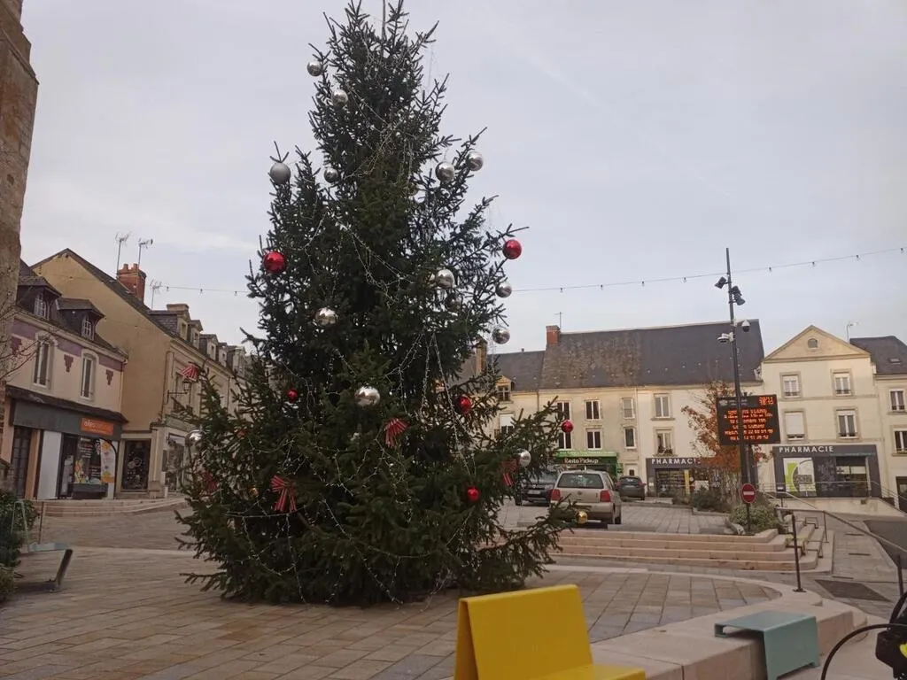 La municipalité de Loué invite les habitants à décorer le sapin de Noël. Ici, celui de 2023. © Archives Ouest-France