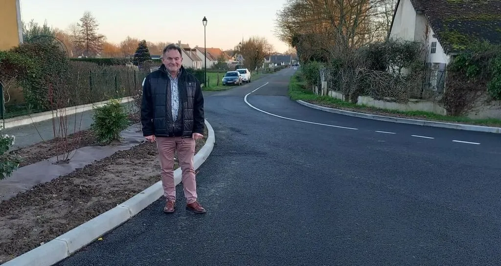 Le maire de Fillé-sur-Sarthe Luc-Marie Faburel devant l’un des aménagements modifiés afin de sécuriser l’accès à la commune. © Le Maine Libre