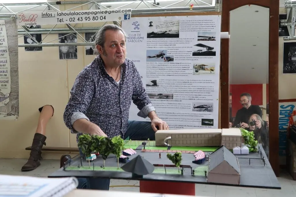 Nicolas David, le metteur en scène de la Houlala Compagnie, devant la maquette du spectacle De la Rocade à Saint-Exupéry, qui sera présenté sur le plateau multisport de l’école Saint-Exupéry en juin 2024. Ouest-France