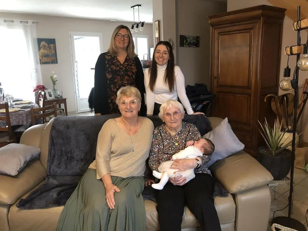 Thérèse, 94 ans, a tenu dans ses bras dimanche 10 novembre 2024, Ambre, son arrière-arrière-petite-fille. Cinq générations étaient réunies à Champagné (Sarthe).