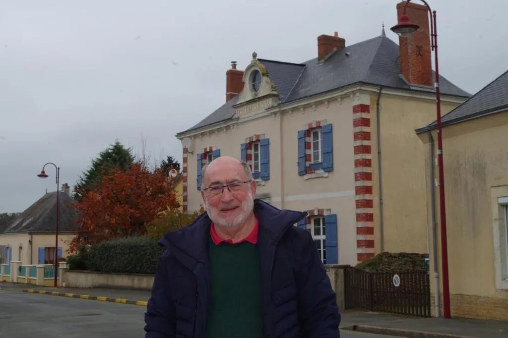 Gilbert Paulin, retraité, passionné d’histoire, a fouillé les archives de Saint-Corneille, l’hiver dernier, avec minutie. Cette exposition est le fruit de ses recherches, destinées initialement à l’écriture d’un article pour le bulletin municipal. Il est, ici, devant l’une des anciennes maisons d’écoles du village. © Le Maine Libre