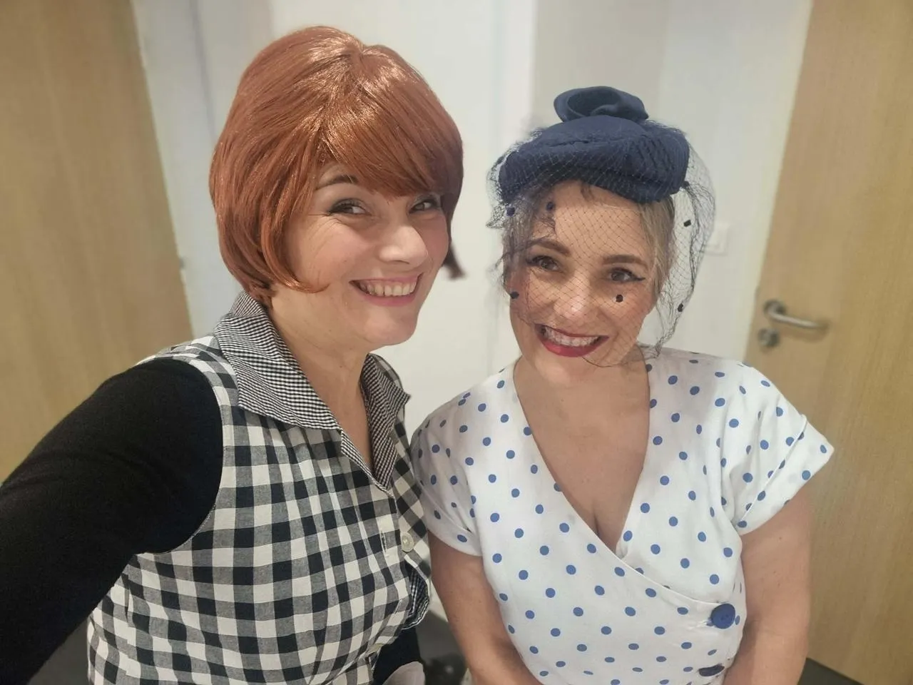 Pour cette pièce, la troupe fait un voyage dans le temps, l’action se déroule en 1956. Au début, nous avions projeté la pièce en 2026. Après une conversation avec Élise, comédienne de la troupe, la pièce a été réécrite pour qu’elle se passe dans les années 50. Il faut dire que nous nous plaisons à nous costumer et la décennie 1950 est plutôt intéressante pour les vêtements. Pour ajouter de la vraisemblance, la troupe a fait appel à l’Association du Maine-et-Loire qui détient une belle collection de costumes de différentes époques. Les décors créés par Frédéric Payraudeau embarquent encore un peu plus les spectateurs dans ce voyage temporel.