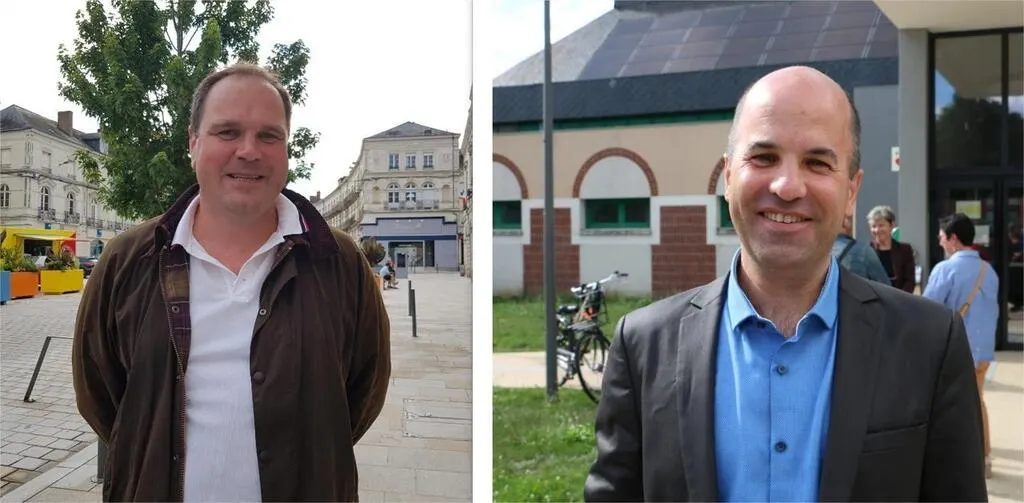 À gauche, Louis Virfollet, candidat du Rassemblement national aux élections départementales dans le canton de Sablé, et Rémi Mareau, candidat sous la bannière Unie. s (DG). © Ouest-France