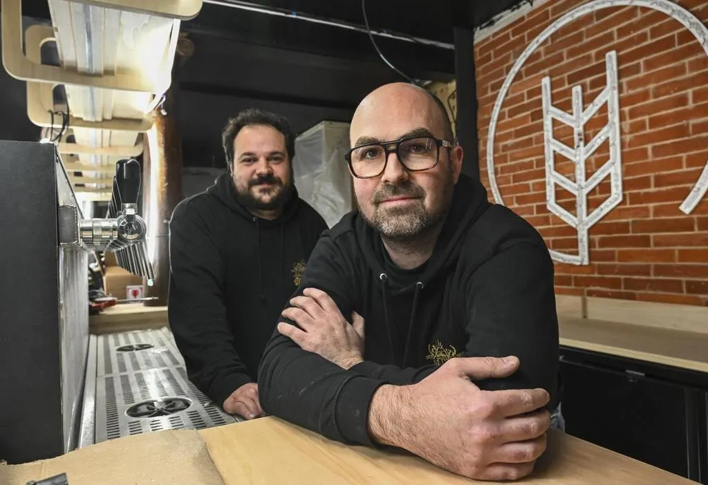 Matthieu Reynaert (au premier plan) et François Breton lancent ensemble le Crafty Brewpub du Mans, rue de la Barillerie. Matthieu s’occupera du bar, François étant occupé par sa distillerie à Loudun. © Le Maine Libre – Denis LAMBERT