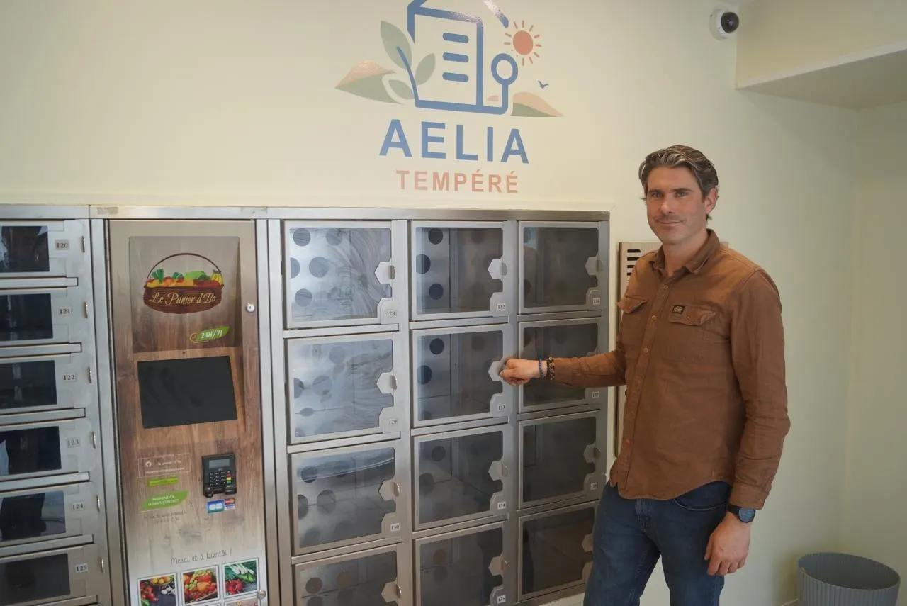 Loïc Brière ouvre sa boutique Aelia, initiales de ses enfants et de sa femme, un locker à casier qui fournira des denrées locales en libre-service. © Ouest-France