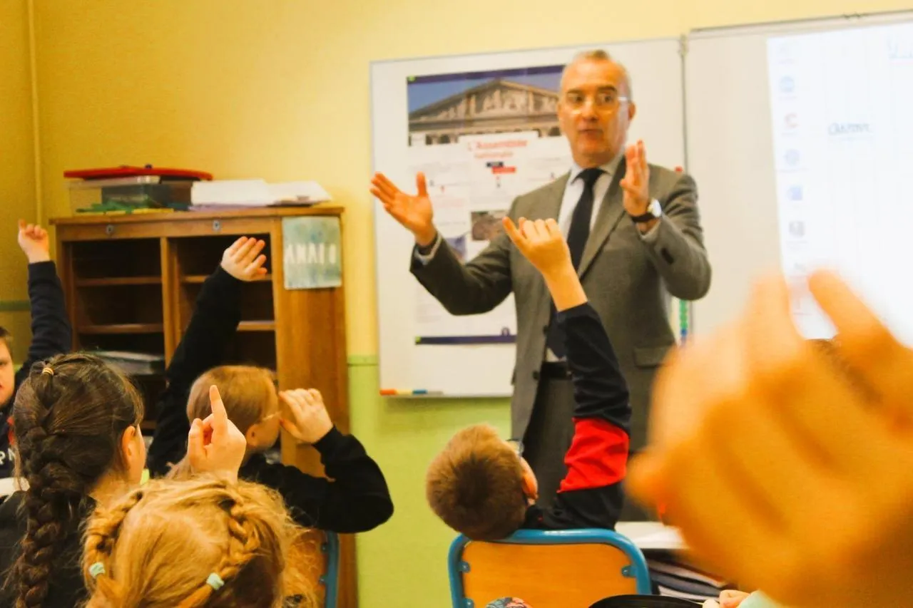 Une classe de CM2 de l’école Paul-Fort de Mamers (Sarthe) a reçu Jean-Carles Grelier, député de la 5e circonscription, au titre du Parlement des enfants. Un échange vivant sur la démocratie, les réseaux sociaux et la vie de député.