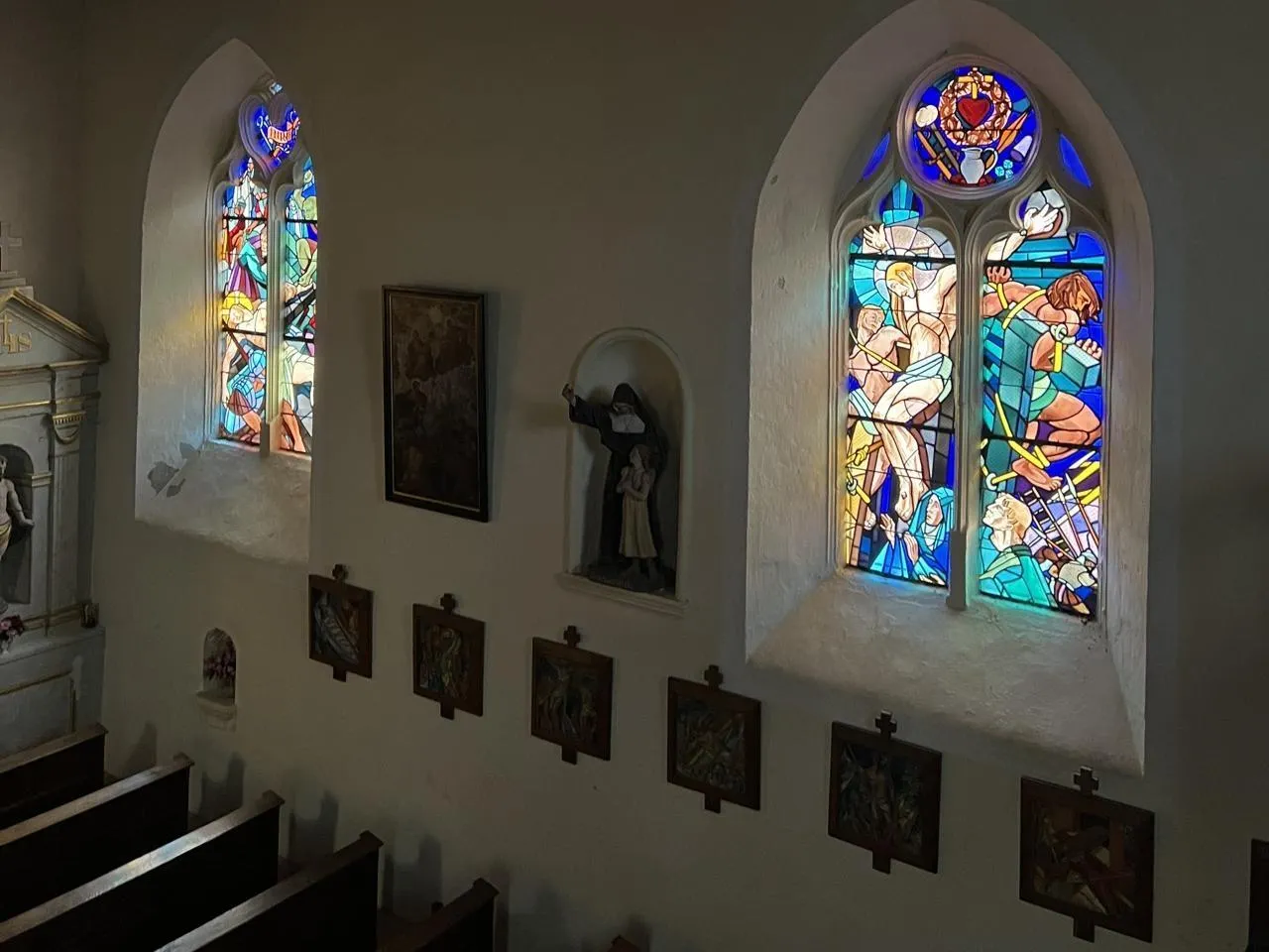 Les vitraux et le chemin de croix de Robert Micheau-Vernez sont à découvrir à l’église de Parigné-le-Pôlin. © Ouest-France