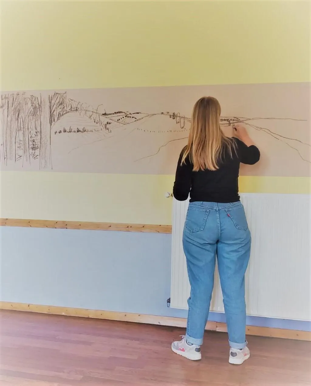 Le Perche est un paysage préservé grâce notamment à ses vallonnements, là où les tracteurs ne peuvent passer facilement. Si proche de la région parisienne et pourtant le Perche propose un dépaysement complet avec des collines douces, rondes et verdoyantes, un bocage unique, des haies qui parcellent les terres, des cours d’eau qui serpentent à travers champs. Une région qui a été habitée dès la préhistoire, et dont la dynamique démographique a fluctué au gré des événements historiques. Alors que Nina et Géraud effectuaient la présentation, Ella qui est étudiante finlandaise en parcours Erasmus, croquait au fusain sur papier kraft, collé au mur, ces jolies courbes percheronnes, un talent artistique que l’on salue ici.