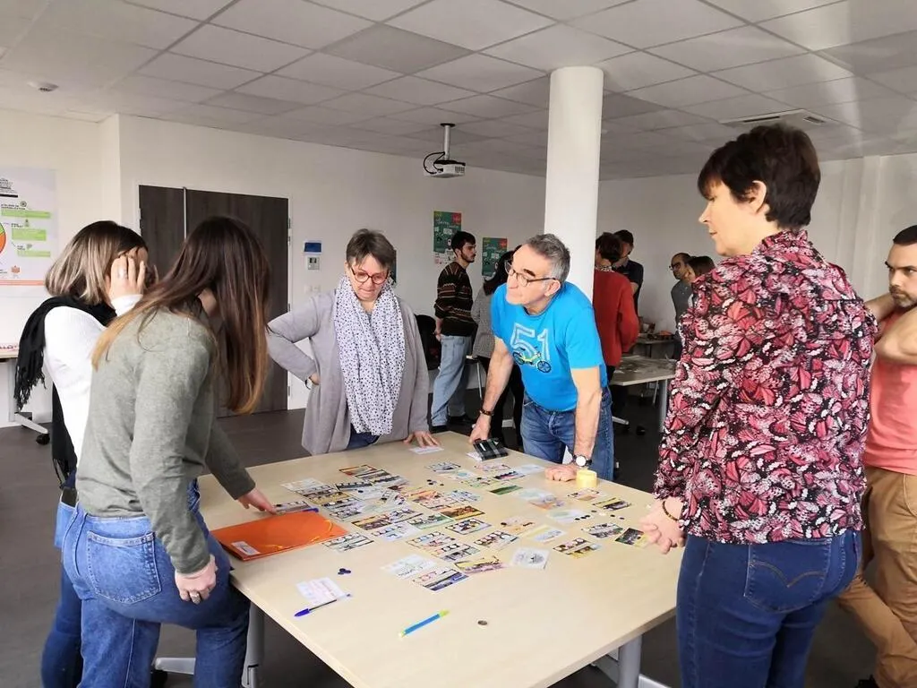 Les participants découvrent les initiatives au moyen d’un jeu. © Transi’Sarthe