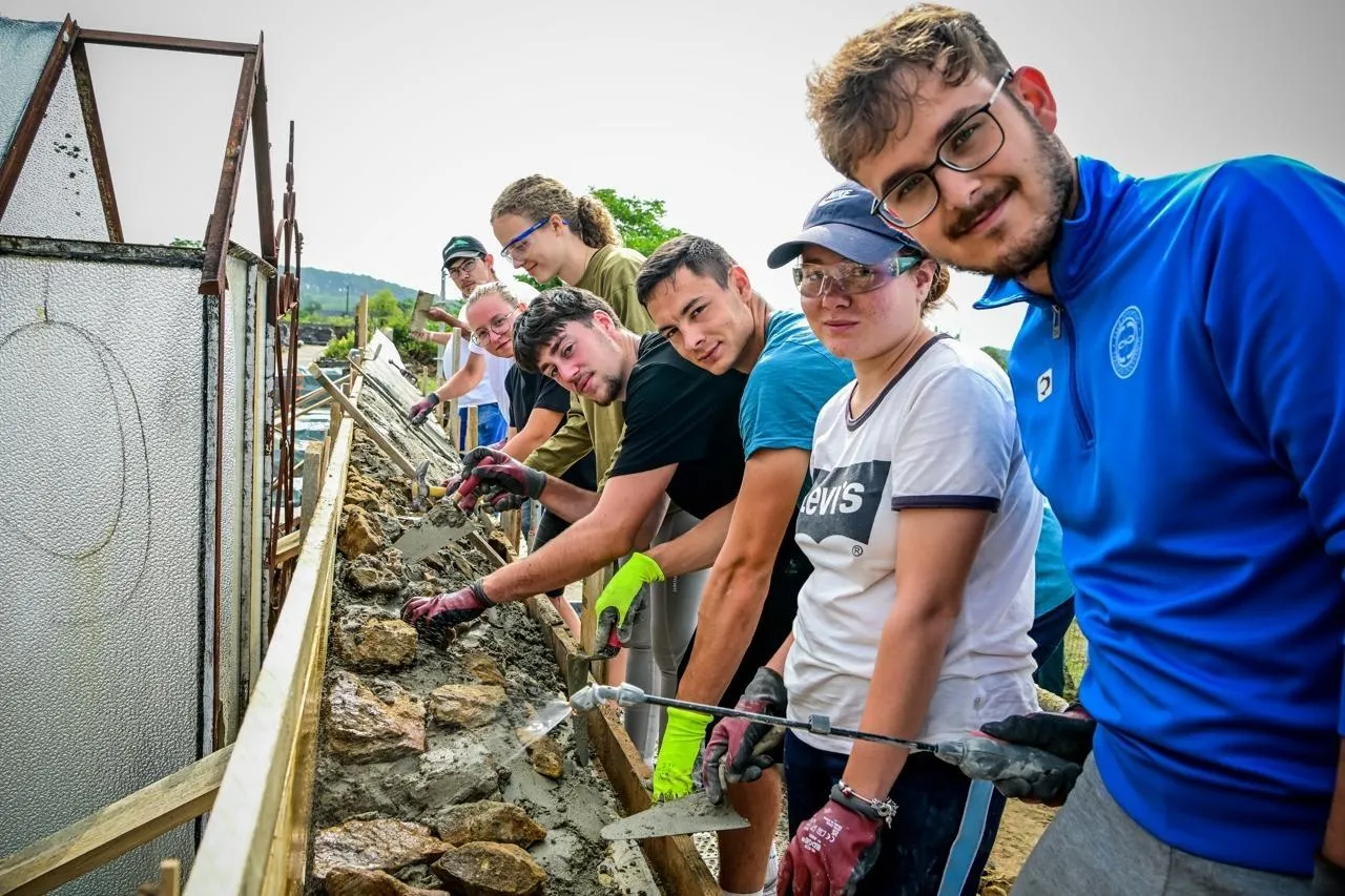 La commune d’Aubigné-Racan (Sarthe) accueille, depuis treize années, un chantier international de jeunes européens. Du 9 au 30 juillet 2025, douze jeunes, de huit nationalités différentes, travaillent à la réhabilitation d’un mur en maçonnerie traditionnelle.