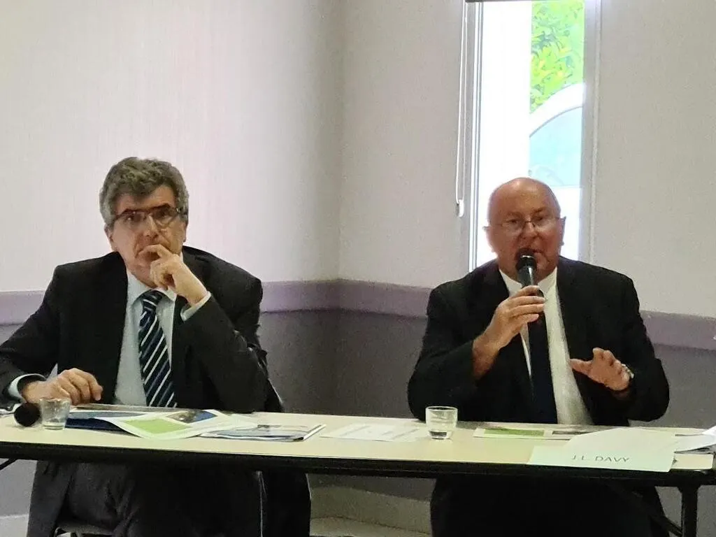 Laurent Gérault, directeur de la Salamandre, et Jean-Luc Davy, président du Sivert, ont présenté le projet de l’Unité de valorisation énergétique (UVE) de Lasse aux Saboliens. © Archives Le Courrier de l’Ouest
