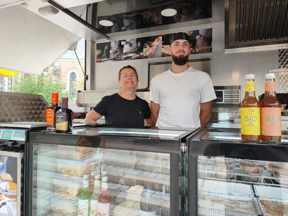 C’est une famille dont l’origine est l’Emilie-Romagne, dans le nord de l’Italie, qui vient sur le marché du vendredi matin. La mère, le père et le fils tiennent une boutique de traiteurs à Torcé-en-Vallée (Sarthe) et seront avec leur food-truck sur le marché.