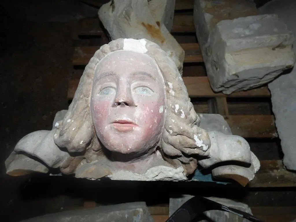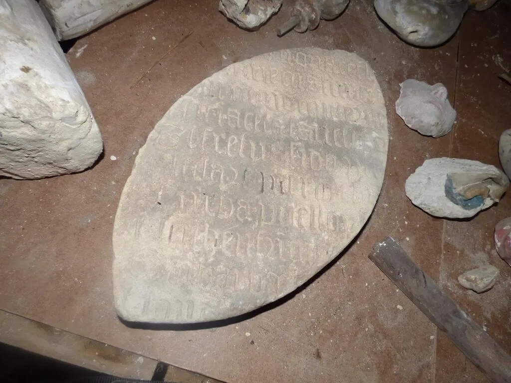 Les membres de l’association CÅ“ur de bourgs s’interrogent sur l’origine de ces pierres qui proviendraient d’un probable retable du XVIe siècle. © Ouest-France
