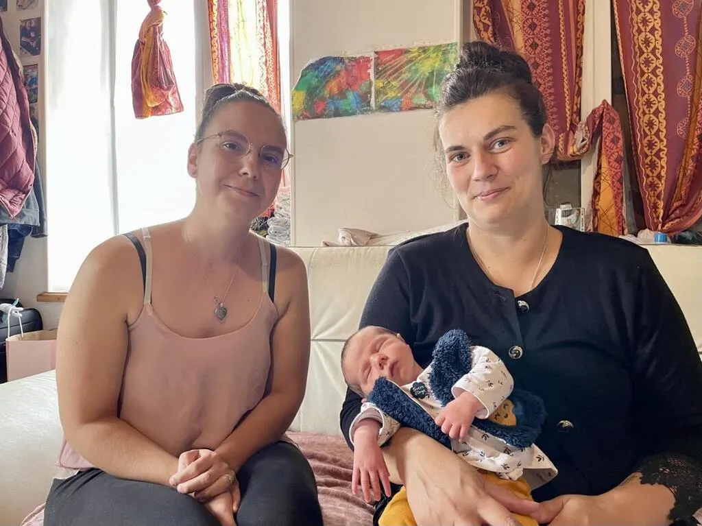Tiffany (à droite) a donné naissance à Linaya chez elle, épaulé par son conjoint et Irène (à gauche) sa voisine et amie de longue date. © Le Maine Libre