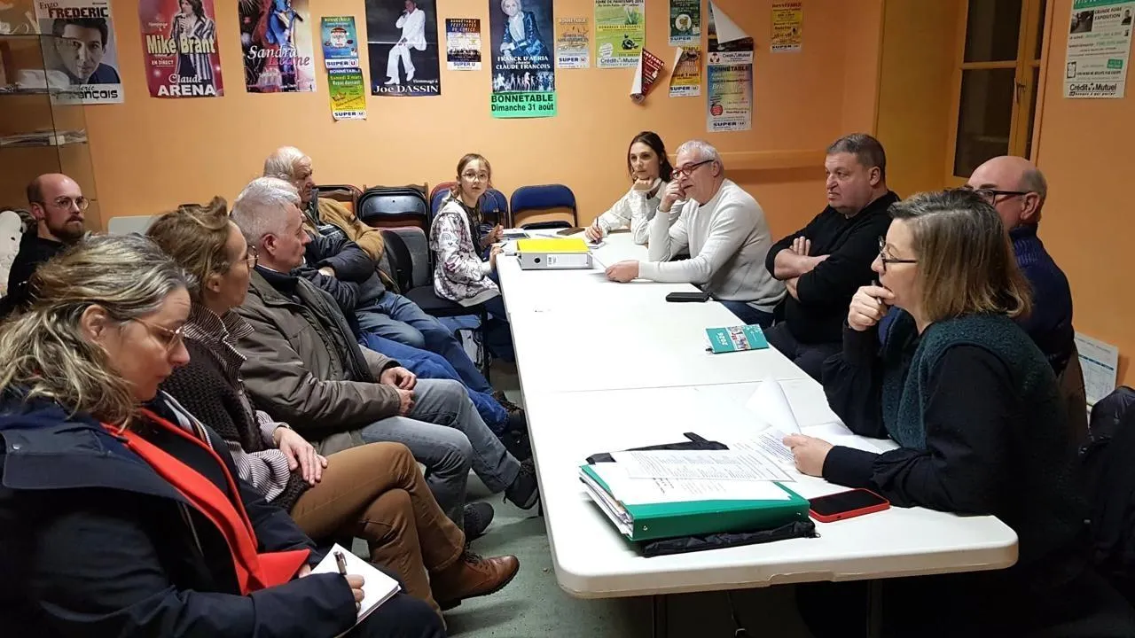 Les bénévoles du comité des fêtes réunis autour du bureau lors de l’assemblée générale. © Le Maine Libre