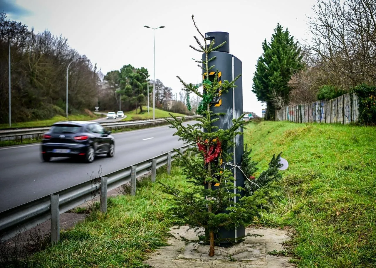 Ce mardi 16 décembre 2025, deux radars automatiques ont été cachés par des sapins de Noël sur la rocade ouest du Mans.