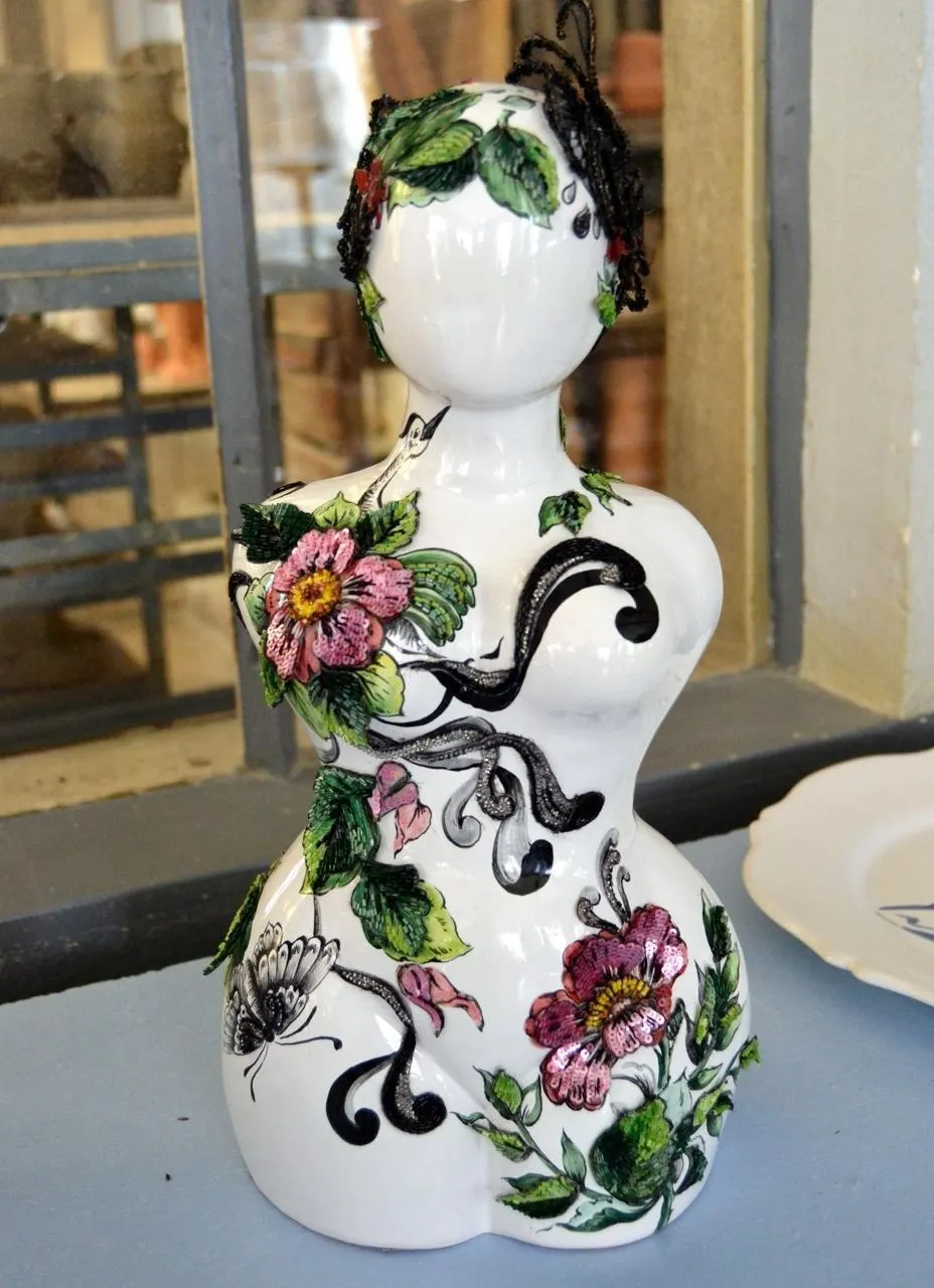 La pièce de la baigneuse à la rencontre de deux savoir-faire, la faïencerie d’art et la broderie haute couture. © Le Maine Libre