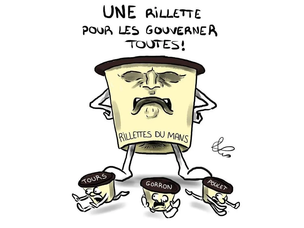 Si les Sarthois disent plutôt « les rillettes », pour eux, il n’y a bien sûr qu’une rillette qui compte ! © Dessin : PLES
