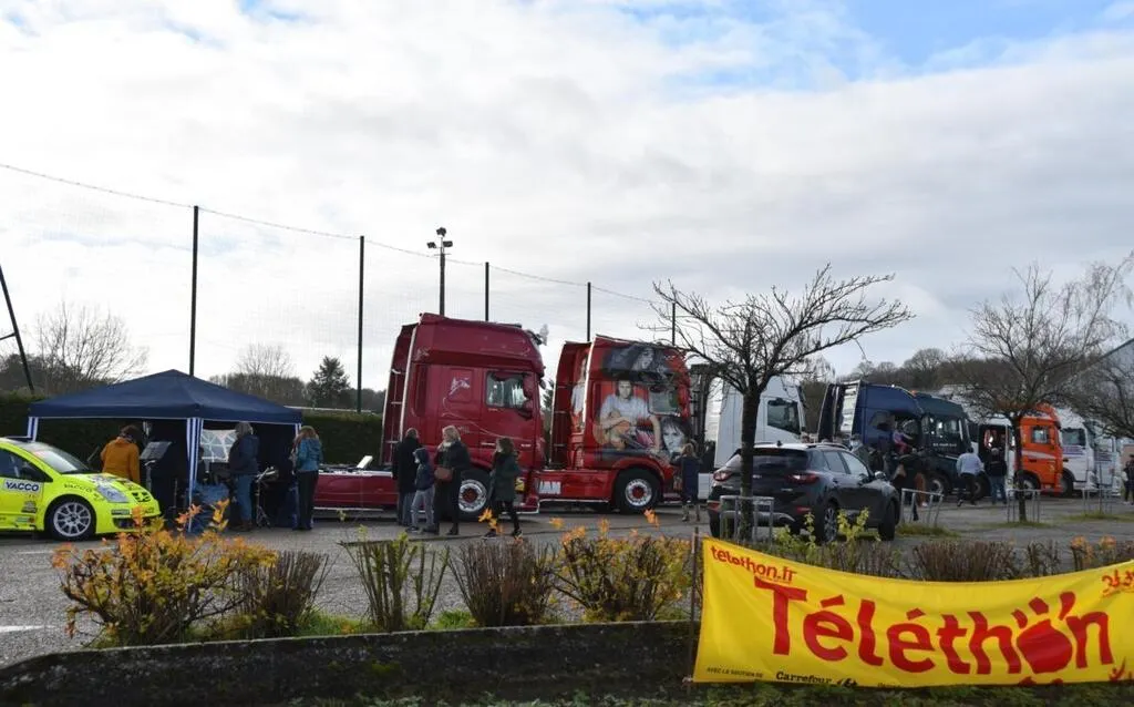 Un imposant rassemblement de camions pour le Téléthon. © LeMianeLire