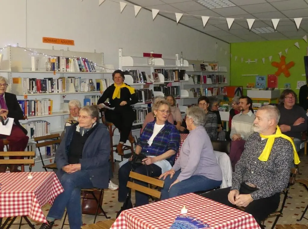 Bel instant de partage à l’occasion de la Nuit de la Lecture dans la bibliothèque municipale de Dollon. Les bénévoles Julie, Françoise, Yvette, Évelyne, Élisabeth, Sarah, Sophie Frédérique et Lionel ont partagé des extraits de livres, autour d’un thème fédérateur, « Le Patrimoine ».