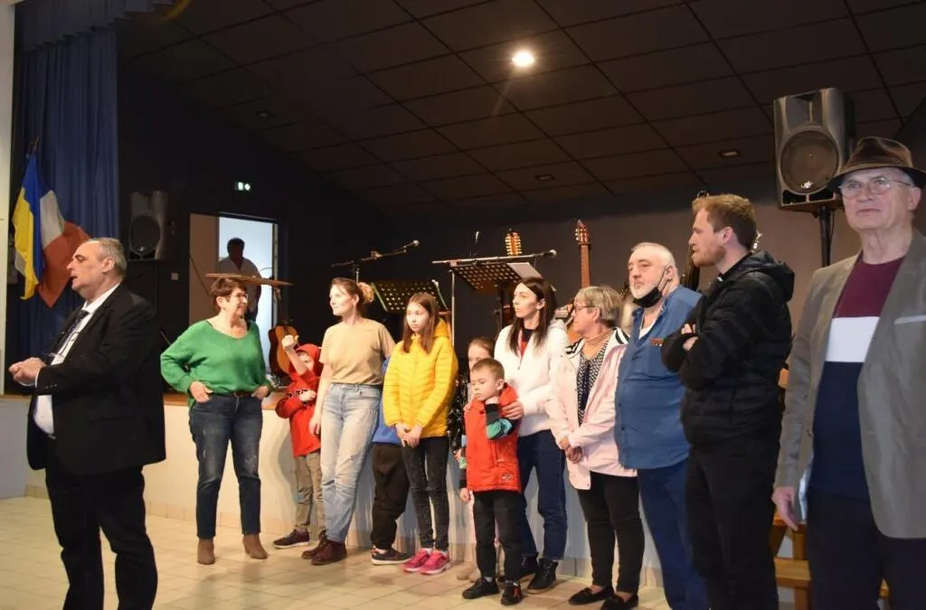 L’Association Musiques magiques et l’association Familles de la Sarthe ont souhaité, avec le soutien de la commune, organiser ce concert où Marc Fouquet, Yves Joubaud et Xavier Plumas sans oublier le maire, Xavier Jamois, se sont partagé la scène. Ce dernier a pris le micro pour interpréter deux chansons de Serge Reggiani et Joe Dassin. « La musique et la chanson font l’objet d’immenses temps de partage entre les artistes et le public. » Ils ont joué pour les Ukrainiens. Et justement, deux familles ukrainiennes hébergées dans les environs étaient présentes à ce concert.