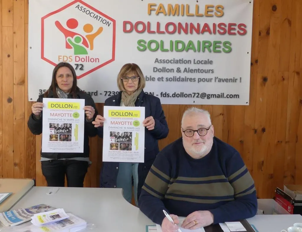 Ce dimanche 16 mars, c’est par le biais d’un concert réunissant trois groupes sur scène que FDS espèrent récolter des fonds pour aider les sinistrés de Mayotte suite au cyclone Chido qui a frappé l’ile le 14 décembre 2024  en collaboration avec le Secours Populaire de la Sarthe et à l’initiative de notre association Familles Dollonnaise Solidaires, nous avons eu l’idée d’organiser ce concert. Les associations Dollon Festivités, Musée de Musique Mécanique et APEIS 72 nous apportent leur soutien, de même que la municipalité de DollonÂ