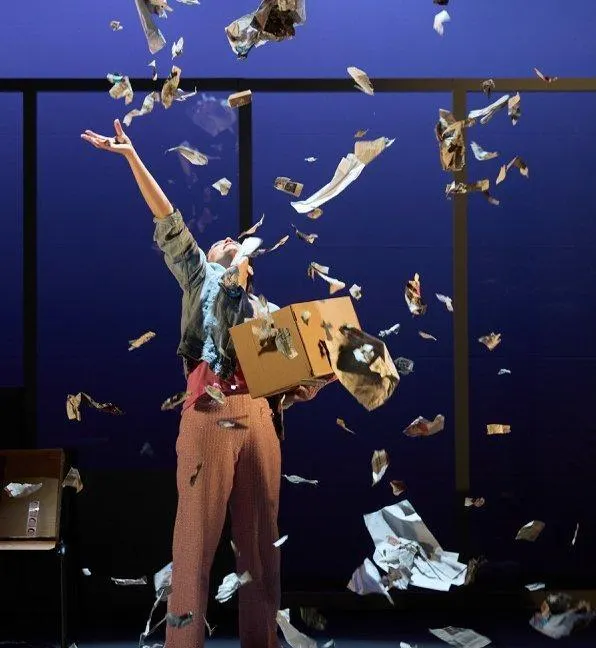 Sur scène, Pamela Ravassard incarne la mère de Burt, enfant estampillé « difficile ». Le décor d’une salle de classe, des jeux d’ombres et de lumières, des reflets, la comédienne envahie la scène et captive l’attention du public.