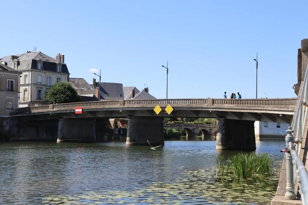 Pendant un mois à compter du 15 juillet jusqu’au 15 août 2025, le pont sur la Sarthe Grande Rue sera fermé à la circulation. © Ouest-France