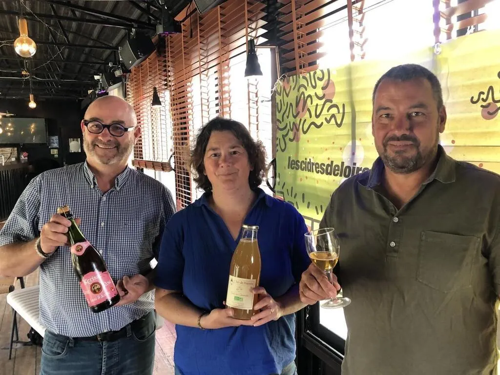 Laurent Guillet, Marie Bourny et Denis Rouland, cidriculteurs en Loire-Atlantique et en Mayenne, défendent une meilleure reconnaissance des cidres des Pays de la Loire, issus principalement du nord de la région. © Ouest-France