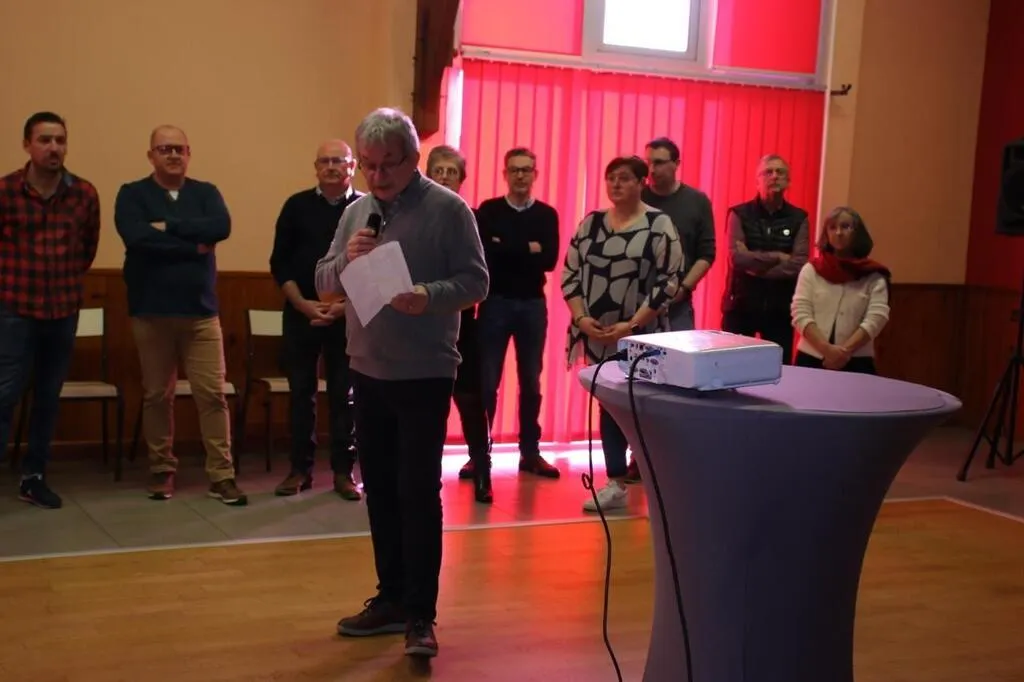 Jean-Denis Guibert, maire, accompagné du conseil municipal, présente les vÅ“ux à la population. © Le Maine Libre