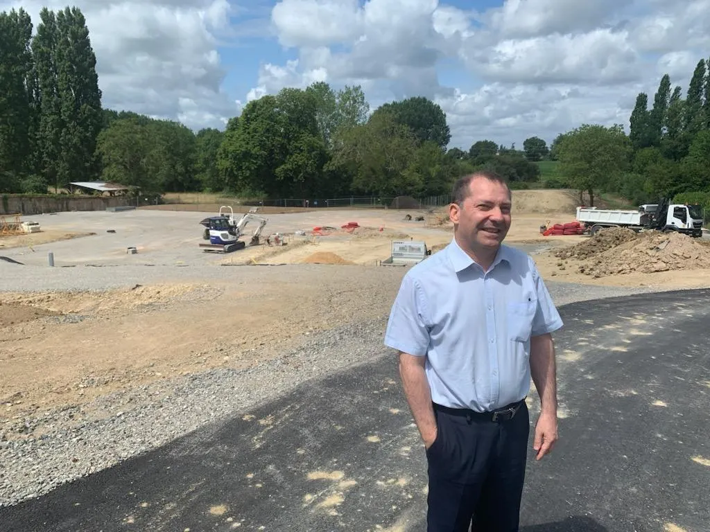 Le maire Sébastien Gouhier devant le chantier de construction de logements à La Boissière © Le Maine Libre