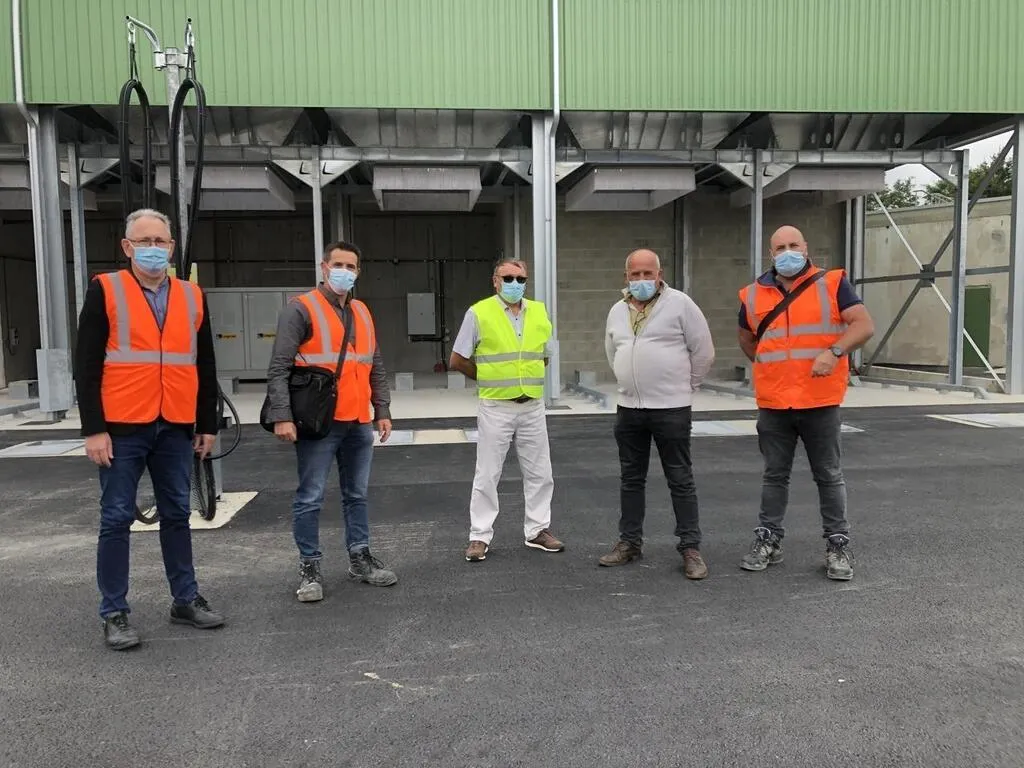 Les élus et le directeur du Syvalorm suivent le chantier qui doit se terminer dans les semaines à venir. © Le Maine Libre