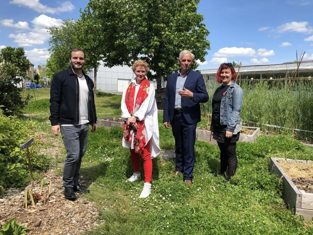Le Mans, vendredi 28 mai 2021. Elen Debost et Gilles Leproust (au centre sur la photo) et leurs remplaçants Samuel Lopes et Elise Leboucher se présentent dans le canton Le Mans 7. © Photo Le Maine Libre