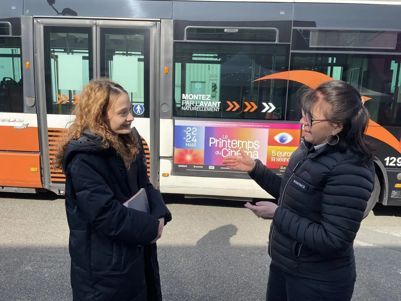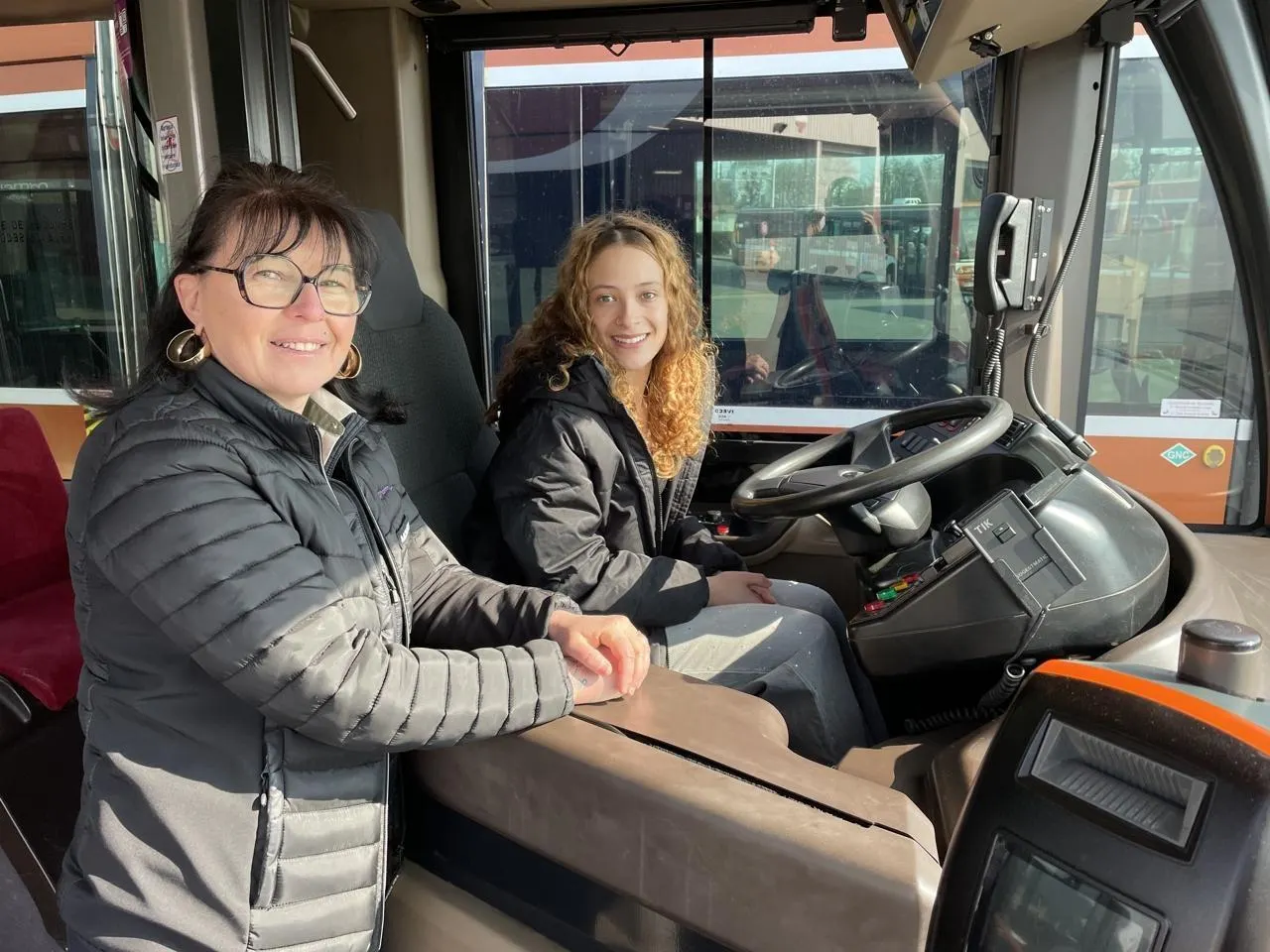 Conductrice à la Setram depuis 11 ans, Clarisse Blin (à gauche) livre ses conseils à Zahra, une jeune fille de 18 ans intéressée par le métier. © Le Maine Libre
