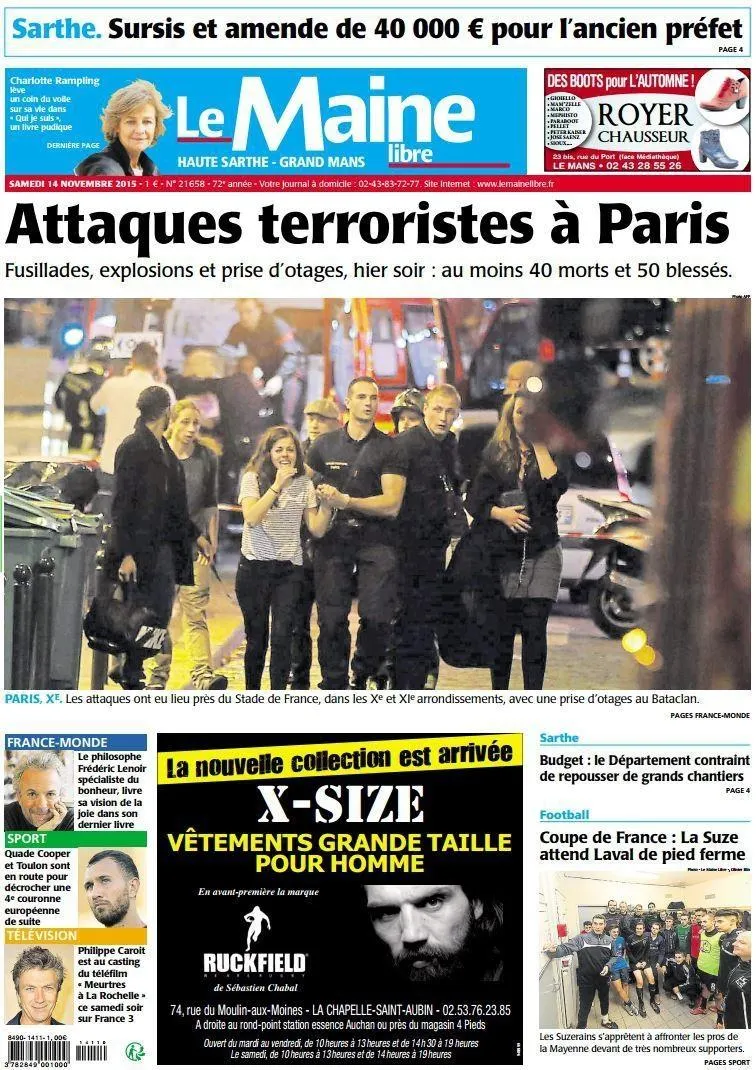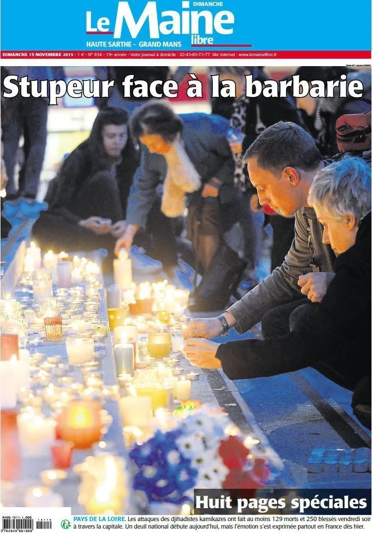 La une du samedi 14Â novembre 2015. Photo archives Le Maine Libre